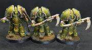 The Blighted Saturnus Terminators are old and wear an old pattern of terminator armor, which is now corrupted by the lord death and decay. They were designed and sculpted by the free-blade artist, KarnageKing.