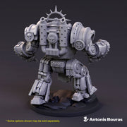 The Eternus Assault Armor is a Multipart, Magnet-Ready kit designed for flex-ability and customization. Fully assembled it stands 7cm tall (about 3-1/2") and is a comparable size to a Contemptor Dreadnought*. It can be assembled in a wide range of poses with many customization including 4 head options. Its arms and weapons come pre-drilled for magnets to make them interchangeable for future-proofing your miniature.