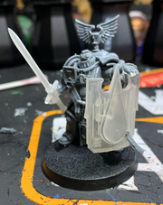 The Aquilas Tower Shields are large ornate shields great for Bladeguard Veterans, Honor Guards, or Assault Terminators. They are sold being held in either the left or right hand, and can be used with the new or classic Marines or Terminator models. The hand and part of the forearm holding it, so adding them to your models requires only a minor amount of hobby skill. Snip off a portion of the model's forearm, just short of the elbow, at your preferred pitch or angle. Shields are sold unpainted, but the raised emblems and details make painting easy, ensuring a consistent and uniform appearance.*