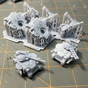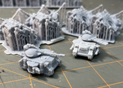 Each of these epic-scale Battle Tanks features a built-in set of sponson weapons and two interchangeable turrets: Autcannon or Twin Laser Cannons. Their peg-fit design allows for easy swapping them to meet the needs of your next game. Compatible with any 6-8mm scale games like Epic 40k and Legions Imperialis. Measures approximately 30mm long, 26mm wide, and 20mm tall.