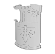 All Palatium Boarding Shields are designed for left-handed use, allowing your 28mm marine models to create a strong, interlocked wall of firepower. They are slightly larger and more ornate than the basic marine boarding shields but are intended for the new 30k-scale marine models. However, our customers have noted that they also look great on the larger "Prime" marine and terminator models. You might find them too large for older firstborn marines.