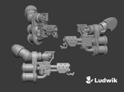 These weapons incorporate a full arm holding the underslung Flame Thrower. Each set includes a even number of Right and Left arms. They are typically used with models that have the opposite arm ready to hold the gun stock, gesturing, or using another item. This is not recommended for models that require both hands to be part of the weapon.