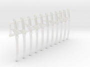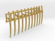 This set includes 5 right hands and 5 left-handed weapons in a variety of grips to insure a unique look for each warrior. It also includes 1 weapon, in a scabbard, without a hand. Each hand has only 3 fingers and features a variety of grips to insure a unique look for each warrior. Our customers find these are sized and styled great for most Tau or other alien models with a 4-digit hand. Sold unpainted, with raised emblems and details to make painting easy and ensures a consistent, uniform appearance to your entire army.*