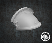 The Squire Knight Pauldrons are shoulder pads that will fit a full-size Armiger/ War Dogs or similar shaped models. They are meant to easily personalize your model by providing a raised emblem for easy painting and to ensures a consistent and uniform appearance.