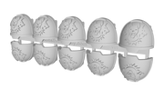 Generation 13 shoulder pad styles draw inspiration from the Mark X: Gravis Armor used by those more heavily armored Primaris Marines. These larger shoulder pads are not suitable for standard 28mm scale marine models but are ideal for Gravis armored units such as Aggressors, Eradicators, Heavy Intercessors, Inceptors, and various special characters. Each pauldron is sold unpainted and features custom raised emblems, details, and patterns to make painting easier and help maintain a uniform army appearance.*