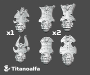 The Pharaoh'tep Helms feature a very distinctive Egyptian occult flair which can be great for your magical legions of dust. These should fit both the new and classic 28mm scale Space Marines or Chaos Marines models. (Helmets are sold unpainted)*
