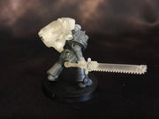 This set of weapons incorporates hands with a variety of grips to insure a unique look for each warrior. These are sold unpainted, with raised emblem and detail on them that makes painting easy and ensures a consistent, uniform appearance to your entire army. These should fit both the new and classic 28mm scale, space marine or chaos marine models.*