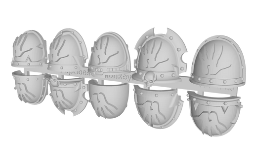 This mixed chaos shoulder pad set contains a total of 10 pauldrons that are inspired by the variety of warp-tainted armor of the chaos marine model...