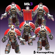 The Invader Squad include 5 Saturnus Terminator models armed with a deadly pair of Power Claws. There are multiple options for the upper weapon mount which includes a Squad Banner, Top-knots or Haloed Skulls. Additional arms and weapons options are sold separately.