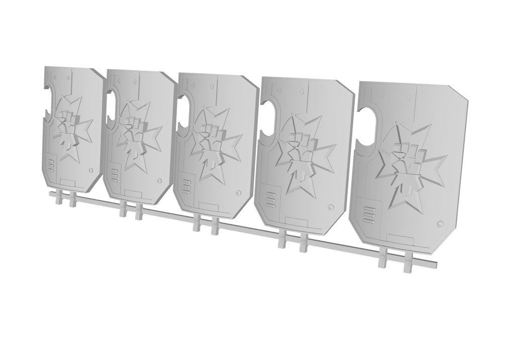 The Standard Marine Boarding Shields are all left-handed, enabling your favorite 28mm marine models to form a strong, interconnected wall of firepower. They are perfectly sized for the new 30k-scale marine models, but our customers have noted that they also look good on the larger "Prime" and firstborn marine models.*
