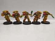 This set of weapons incorporates 5 right hands and 5 left hands in a variety of grips to insure a unique look for each warrior. It also includes 1 weapon without a hand. These are sold unpainted, with raised emblem and detail on them that makes painting easy and ensures a consistent, uniform appearance to your entire army. These should fit both the new and classic 28mm scale, space marine or chaos marine models.*