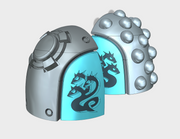 The Generation 5 styles of shoulder pads are inspired by the Mark V: Heresy armor. Our customers find these pads compatible with most new and classic 28mm scale marine models. Sold unpainted, each pauldron features custom-designed raised emblems, details, and patterns that simplify the painting process, ensuring a consistent and uniform appearance for your entire army.*