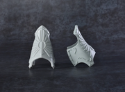 TufFlex MJP is another Monkey-Jet material with a smooth surface and an extremely high level of detail. However, it's formulated for improved toughness and flexibility to provide a bend-but-don't-break strategy of protection for your models. Thin parts may arrive slightly warped but, can be easily re-shaped by warming them up to be bent back into shape. This can also be an added benefit if you're looking to glue a flat logo onto a curved surface. At room temperature parts will flex but, they can be brittle at much lower temperatures. Use super glue to adhere these parts to your models.