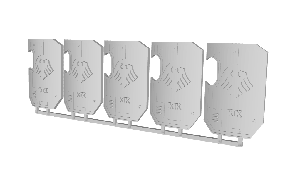 The Standard Marine Boarding Shields are all left-handed, enabling your favorite 28mm marine models to form a strong, interconnected wall of firepower. They are perfectly sized for the new 30k-scale marine models, but our customers have noted that they also look good on the larger "Prime" and firstborn marine models.*