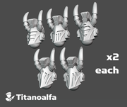 Ferrodor Helms are twisted remnants of the once-noble marine helms. Now warped by the Iron Father, their masks emit the fiery glow of forge light. These should fit both the new and classic 28mm scale Space Marines or Chaos Marines models. (Helmets are sold unpainted)*
