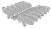 These weapons are designed to be held with both hands, in a position that matches the Cadian Guardsmen kit. However, our customers say they can also work with other baseline human models. Keep in mind that kits can change, and these are not "factory-fit" parts. Some hobby skills are needed to ensure these conversion bits fit properly. For models gesturing or using other items, we include a few guns held in a single-handed grip for both left and right hands. Additionally, we sometimes sell this weapon as part of our One-handed Sets for Marines, Terminators, Humans, and others.