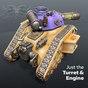 This custom-designed turret and engine block are intended for use with a standard Leman Russ battle tank kit. The iconography on the side of the turret is from a custom vehicle insignia kit and is not included in this kit. It uses two 8mm (Wide) x 2mm (Thick) magnets to attach the Plasma Cannon to the SteamRuss Turret, allowing for easy and quick weapon swaps. Currently, no other weapon options are available.