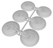 Naxos Combat Shields feature an integrated bolt pistol that enables melee troops to carry both a ranged and a defensive option in their off-hand. These sets include an equal number of left- and right-handed shields designed to fit your favorite 28mm models, especially the new “Prime” marine models. Some might feel these shields are on the larger size for 30k and Firstborn Marines models, but they can create a cool, imposing appearance.*