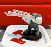 The Vegaram Master-Crafted Long Guns are custom designed weapons to be added an Arkanaut Dwarf model (torso) to convert them into unique Votann Hearthkyn Warrior or even a Squat Guardsman. Both arms are included with the guns in a variety of poses, both Right and Left handed to give a unique pose to each of your models.